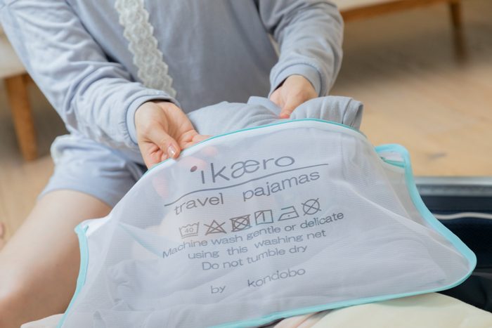 ティッシュのような軽く柔らかいikaeroパジャマの風合いを長く楽しんでいただくためのお手入れ方法をご案内します。 ティッシュのような軽く柔らかいikaeroパジャマの風合いを、長く楽しんでいただくためのお手入れ方法をご案内します。 ikaeroパジャマは洗濯ネットに入れてお洗濯をすると型崩れを防いでくれるのでお勧めです。お好みの柔軟剤を一緒に使用すると、より柔らかな風合いが楽しめます。 お洗濯方法としては40℃以下の水で弱い洗濯とし、 形を十分に整えてから日陰でつり干しをしてください。アイロンをする場合は110℃以下でお願いします。 ※注意事項漂白剤は使用禁止です。タンブラー乾燥はご使用しないでください。ドライクリーニングはできません ikaeroコットンを末長くお楽しみください。